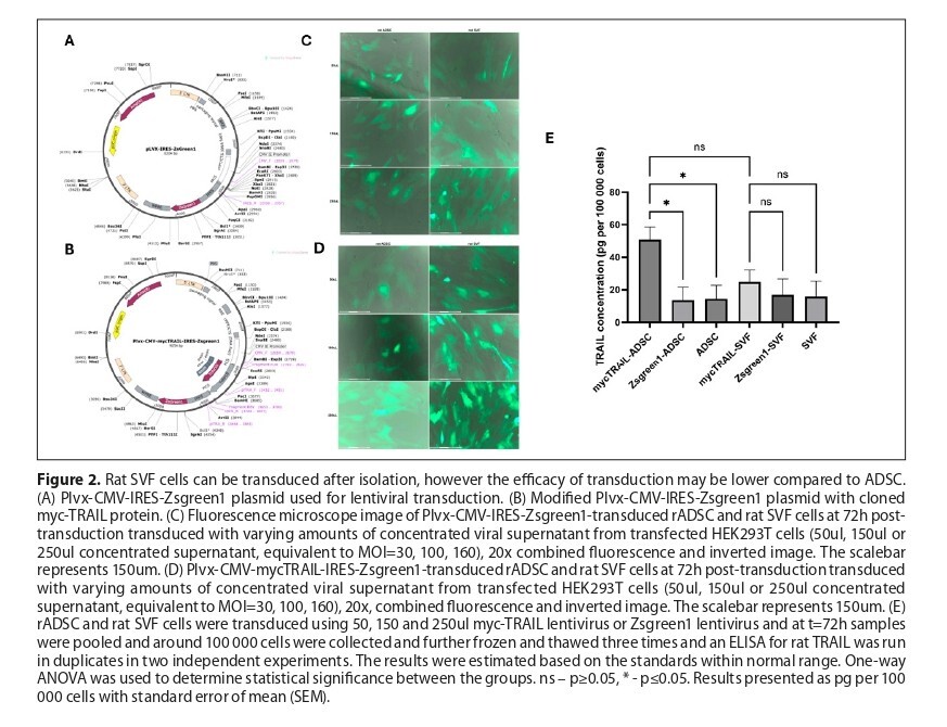 Rat stromal vascular fraction (rSVF) cells can be directly transduced to express rat TNF-related apoptosis inducing ligand (rTRAIL), and exert similar but less prominent effects compared to rat adipose derived stem cells (rADSC) – an in vitro study